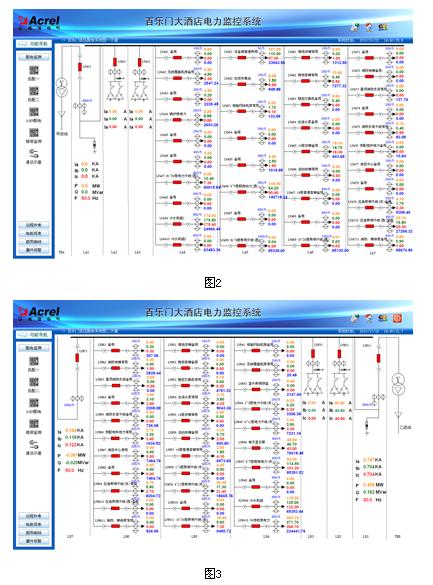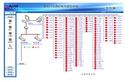 实现对百乐门大酒店的22个楼层的PZ系列电力仪表和配电室的PZ、ACR系列电力仪表进行远程监测。