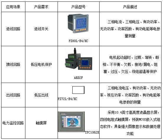 出线柜:通过PZ72L-E4/KC交流仪表采集出线柜单个回路的交流电流、电压、功率等参数,并利用电动机保护器ARD2F对出线回路电机进行数据监测和保护;