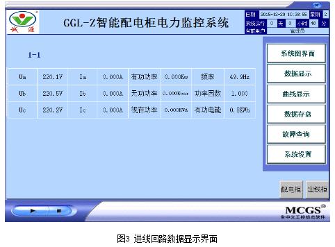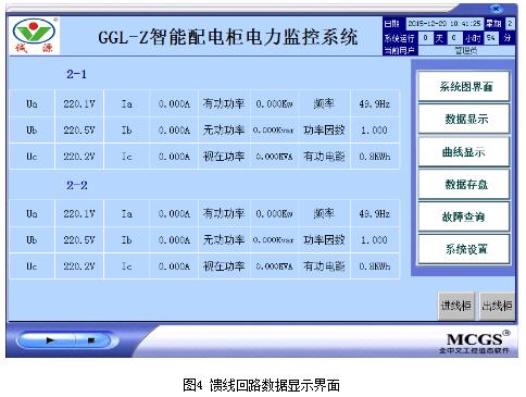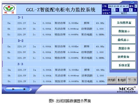 安全运行监视,操作人员借助触摸屏系统人机界面,监视智能配电柜的进线、馈线、出线回路的设备运行状态,并实时显示,便于设备在运行状态发生变更时及时进行分析和处理。