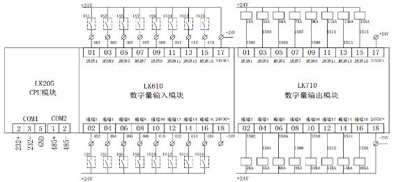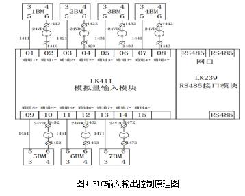 杨树浦泵站自控系统PLC控制回路主要由CPU模块、PLC数字量输入、输出模块、模拟量输入模块、通讯模块组成,数字量输入模块采集杨树浦泵站现场的断路器合闸、分闸位置、手车工作、试验位置、弹簧储能、保护装置信号、主泵手动、远方控制、急停按钮、电源故障等数字量输入信号,模拟量输入模块采集杨树浦泵站的主泵电机绕组温度、定子绕温度、主泵进、出口压力等模拟量信号,将采集的信号传送至CPU模块,由CPU模块内部程序进行逻辑处理,输出控制开关合闸、分闸控制、主泵开关紧急分闸、故障跳闸、主泵内、外侧门提升等,同时,由通讯模块实现PLC与现场多功能表的通讯、数据采集,PLC控制原理图如下图所示。