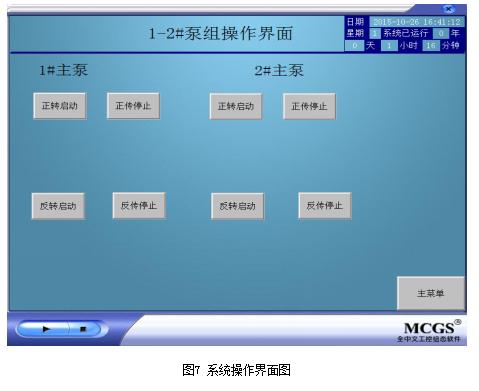 简便的操作模式,只需要在触摸屏操作界面按下正转起动、正转停止、反转起动、反转停止按钮,即可实现水泵的正转、反转控制。