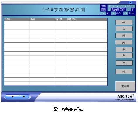 3) 泵站自控系统实时反映设备的故障状态,进行报警记录显示,便于后续设备故障的维修。
