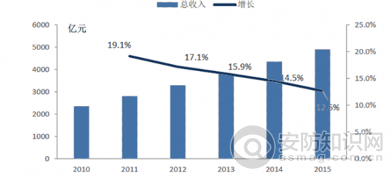 国内市场对安防的需求依然高涨。国内安防市场在过去5年实现了翻倍增长,已达5000亿规模。受下游需求和经济放缓影响,安防增速开始逐渐放缓。预计在今后几年增速继续回落,但是仍能维持10%以上的较高速度增长。