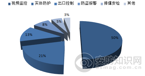 我国的安防产业主要涵盖安防产品、安防工程与安防运营服务三大类。从产业结构来看,去年我国安防产业总规模达到了4980亿元。其中,安防产品市场规模约为2000亿元,安防工程市场规模约2500亿元,运营服务及其他约为400亿元左右。按照产品分类来看,视频监控占比*大,其次为安检、防盗报警、出入口控制和实体防护市场。去年我国视频监控市场规模已达到1000亿元以上,年增速维持在19%左右,占所有电子安防产品的2/3。