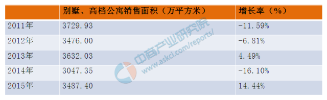 智能家居主要应用于高档公寓、别墅、酒店。2015年,中国高档公寓、别墅销售面积达3487.4万平方米。