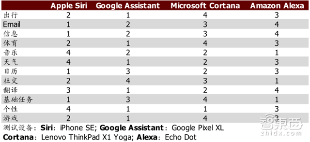 *Business Insider 为四巨头的智能语音功能评分(注: 1-4 为排名, 1 表示*好)