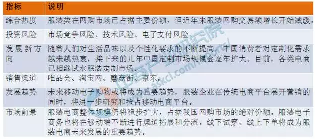 规模稳步扩大:服装类在网购市场已占据主要份额,从近年来的数据对比分析,可以看出虽然服装网购交易额增长持续减缓,但这也正是服装电子商务趋向成熟发展的标志。未来几年,服装电商整体规模仍将稳步扩大,占据我国网购市场的####份额。