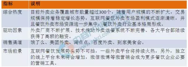 中国互联网餐饮外卖市场目前处于高速发展阶段。就目前而言,互联网餐饮外卖市场仍主要集中在一二线城市。随着外卖厂商不断扩展中小城市,同时深入不同人群需求,外卖用户规模将持续扩大。面对巨大的市场空间,资本对外卖行业持续看好,在资本的支撑下外卖市场开始快速扩张。未来,中国互联网餐饮外卖市场进入高速发展期。