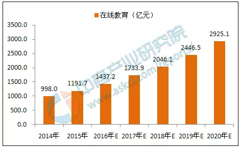 2015年,我国在线教育规模达到1191.7亿元,在互联网的飞速发展下在线教育方式覆盖率快速提高,除了一些营利性机构或产品外,学校或一些官方教育机构,也将在互联网的大潮下,加快进行线上教育的建设。十三五期间,年复合增长率将达到19%左右。
