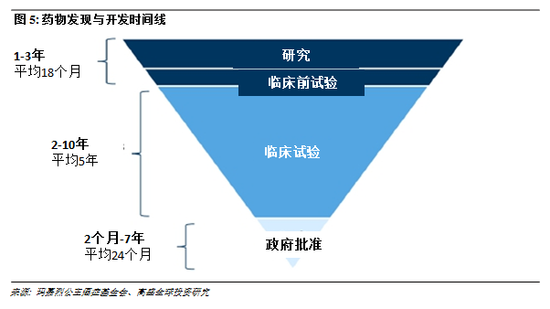目前,药物发现和开发业务是一个极为漫长的研究、测试和审批过程,持续的时间可达10年以上。据塔夫特药物发展研究中心报道,一款药物从**阶段推进到通过FDA审批,平均需要花费96.8个月的时间。