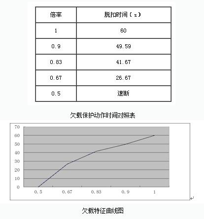 当电动机所带负载为泵式负载时,电动机空载或欠载运转会产生危害,保护器提供欠载保护。导致潜油电泵欠载的原因主要包括油管刺穿、泄油阀漏、沉砂管漏导致的管柱漏失;地层供液差、防砂筛管异物堵导致的供液不足;泵、管柱砂堵、泥浆堵;泵轴、分离器轴断等等。当三相的平均电流与额定电流的百分比低于欠载设定值时,保护器将在动作(延时)设定时间内动作。欠载保护的延时时间随着电流欠载倍数的增加按反时限减少。