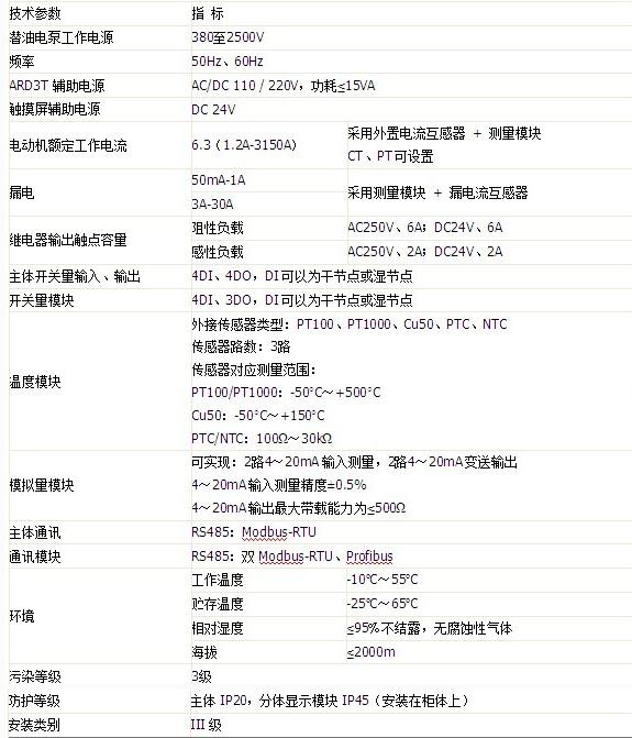 智能保护器对潜油电泵实现保护、测量、控制功能。安科瑞公司的ARD3T电动机保护器就是针对潜油电泵的专属保护产品。ARD3T产品包括主体模块、测量模块、开关量模块、模拟量模块、温度模块、通讯模块,并配以触摸屏用以实时显示测量及保护参数。