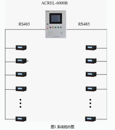 本工程共1栋建筑,共计146个配电箱,根据《建筑电气火灾预防要求和检测方法》有关条文明确要求“为防止电气设备和线路漏电火灾,应在电源进线端设置自动切断电源或报警的剩余电流动作保护器”。 因此本项目在各配电箱进线处设置漏电火灾探测器146台ARCM200BL-J1及146台剩余电流互感器AKH-0.66L,并在消控室设立壁挂式电气火灾监控系统Acrel-6000/B。配电箱模块通过两根485总线连接到后台,将各处的漏电及温度信息进行集中监控,便于工作人员进行统一管理。
