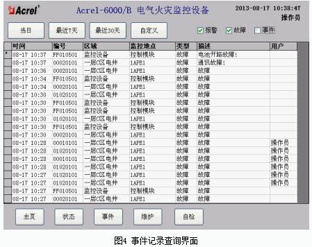 用户于该界面内可查询任意时段内相应报警、故障、事件类型的记录。