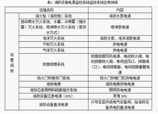 消防设备电源监控系统监控系统应用领域如表1所示。