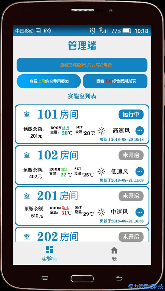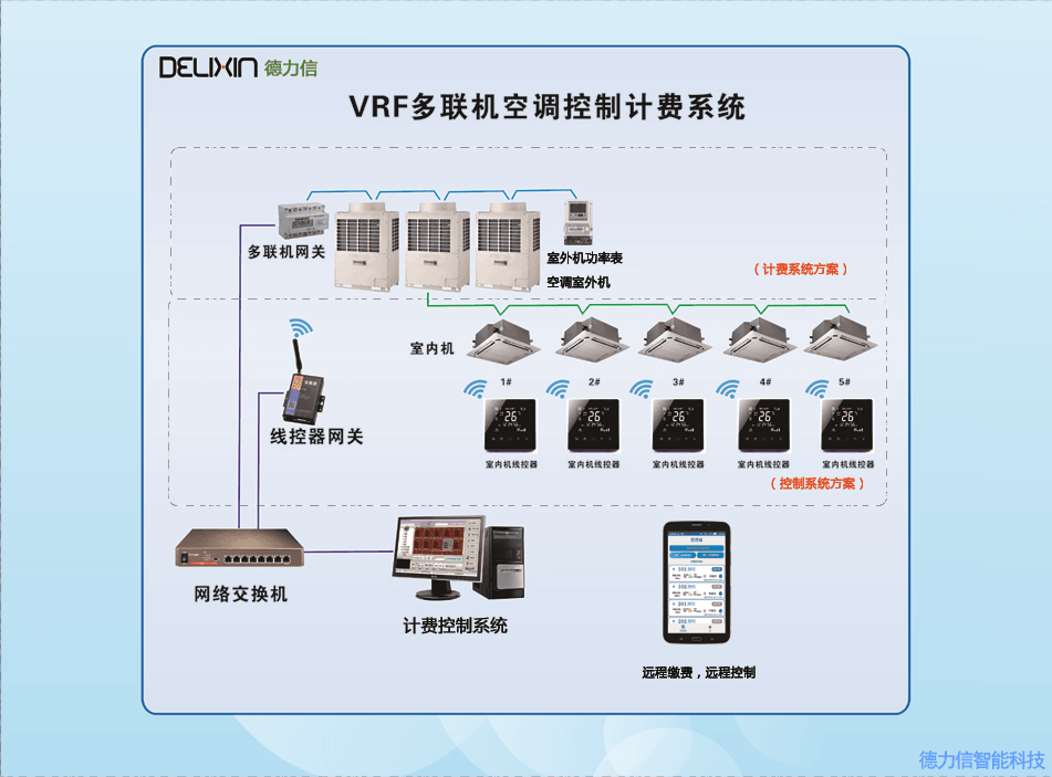 一、系统介绍 T6500多联机空调控制计费系统,针对国内常见几种品牌的多联机空调系统实行,远程控制与计费管理。系统采用MQTT网络协议,以订阅/发布模式实行设备感知,实现对室外机、室内机的状态监测、实时故障报警、累计分摊费用的实时数据传导、预缴费通知管理等。特点具有灵活性、易用性、安全性和数据查询功能,满足了现代物业和节能建筑管理的需要。 1、空调计费主要设备组成部分:由T6500多联机空调控制计费系统软件,AS-3(R)VRVMAX多联机空调通讯控制器,AS390网络交换器,空调室外机电表。 2、空调远程控件系统组成部分:由T6500多联机空调控制计费系统软件,AS-3(R)VRVMAX多联机空调通讯控制器,AS390网络交换器,T650手机APP控制软件(如需要更换室内机面板,则每个室内机可更换成型号:AC801-VRV-Lora室内机空调面板、和Lora室内机网关)。 ![]() 二、部分系统功能介绍