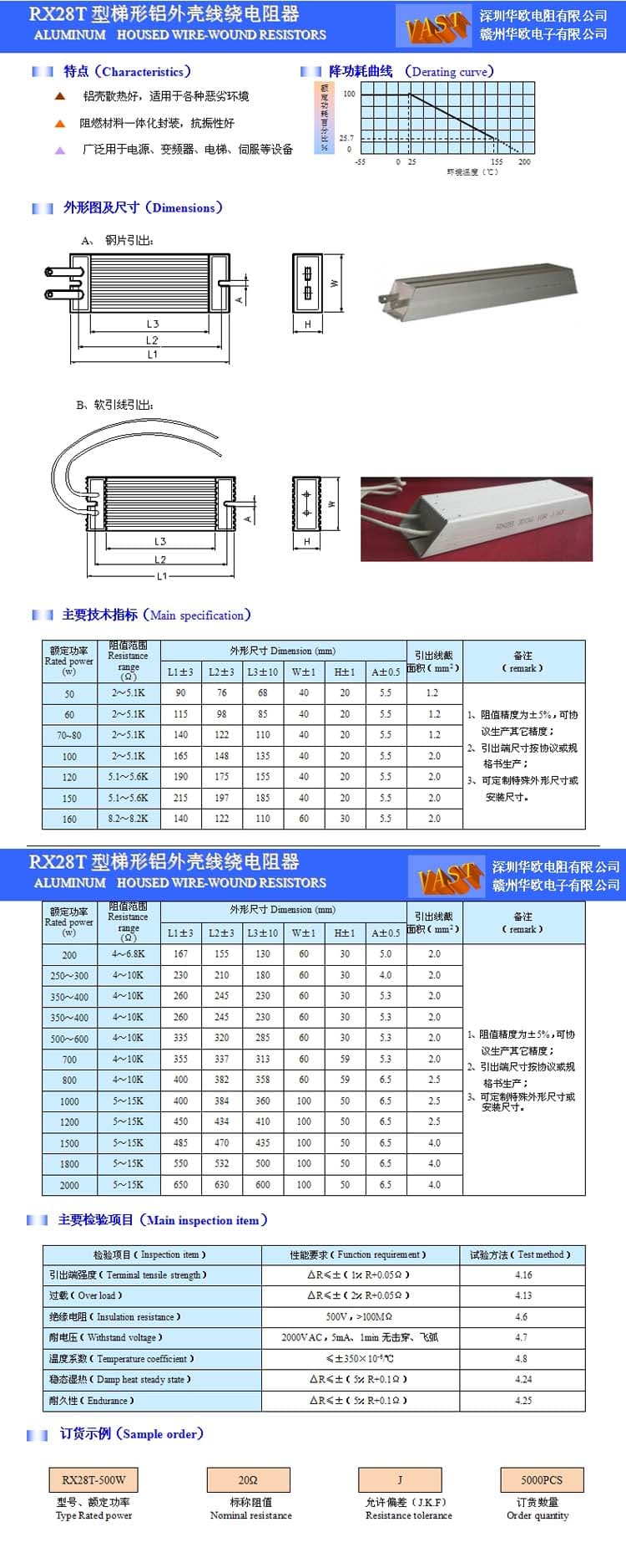 主要产品:精密型、普通型金属膜电阻器;金属氧化膜电阻器;碳膜电阻器;线绕及膜式熔断电阻器;涂漆型线绕电阻器;高压玻璃釉电阻器;高压片式电阻器;各类水泥电阻器;大功率瓷管线绕电阻器;各种型号、功率铝壳电阻器等,并向同行供应镀膜组分棒。