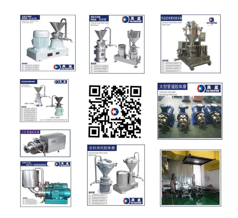 [ 编者]按: CN.HAOSTAR多功能胶体磨是一种系统工程、产品机型品种多、规格齐全,简称:胶体磨,英文学名COLLOID MILL; COLLOIDAL MILL 中文拼音JIAOTIMO(研磨机GRINDIND MACHINE )胶体磨企业标准代号:JTM、JM、CM、JP、HS-A,B,C、SRH系列 ;胶体磨海关代码:84798200.90又名:竖式转锥磨机、竖式转圆锥磨机、斜锥磨机、湿法超微粒粉碎机,湿式粉碎机、胶磨机、研磨泵(管线式研磨泵)、万用磨浆机、高剪切乳化研磨机、多功能研磨机组、白炭黑胶体磨、钛白粉研磨机、管线式高速胶体磨、胶磨机、全封闭式胶体磨、高速研磨机、沥青胶体泵、研磨机泵、混料泵、垃圾粉泵、煤焦油胶体磨、酒糟胶体磨、重油乳化胶体磨、混合油研磨泵、大米碾磨浆机、高剪切多功能研磨机组等等及制胶的先进机械设备。