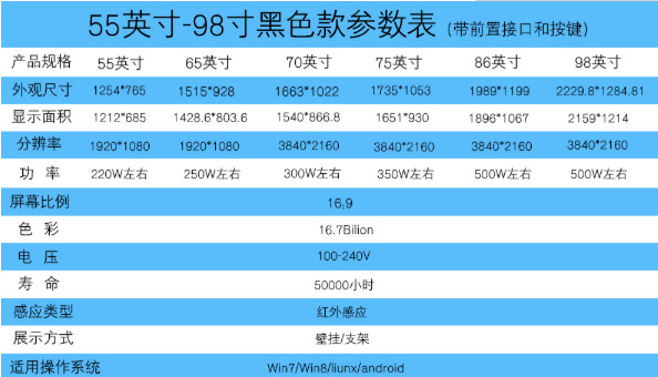 【产品规格】:oled拼接屏适合会议室吗、无色差拼接屏、触摸查触摸教学一体机、50寸户外广告机等