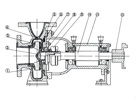 e、如需更换泵体则要拆卸进出口管道和泵体与底板的联接螺栓;